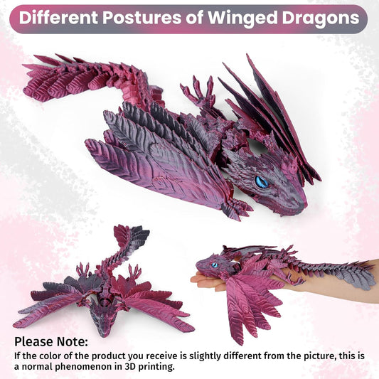 3D Printed Dragon with Wings,3D Printed Animals Toy,Crystal Dragon Fidget Toys,Full Articulated Dragon Crystal Dragon,Adults Fidget Toys for Autism ADHD