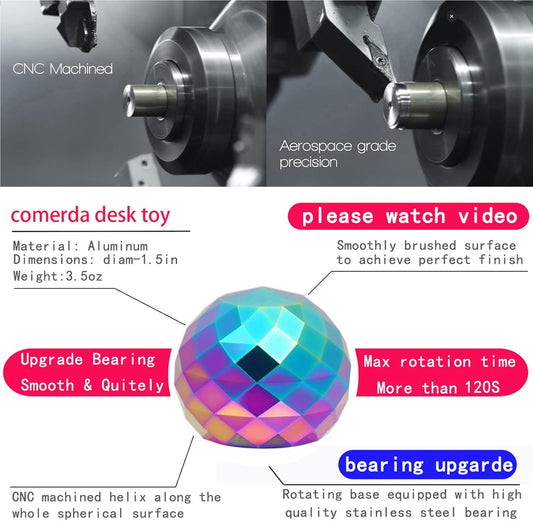 Kinetic Desk Spinnin Toys Ball, Fidget Toy Balls for Office for Adults, Optical Illusion Rotating Ball for Office ADHD Anxiety (45mm, Rainbow)