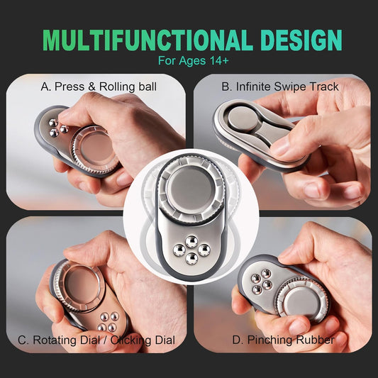 Fidget Toys Adults, OPPKIE Handheld Metal Desk Sensory Fidgets Toy Promotes Focus for Home Office Outdoors, Satisfying Toy for Men Teens Adults, Stress Pressure Anxiety Relief Tools (Silver)