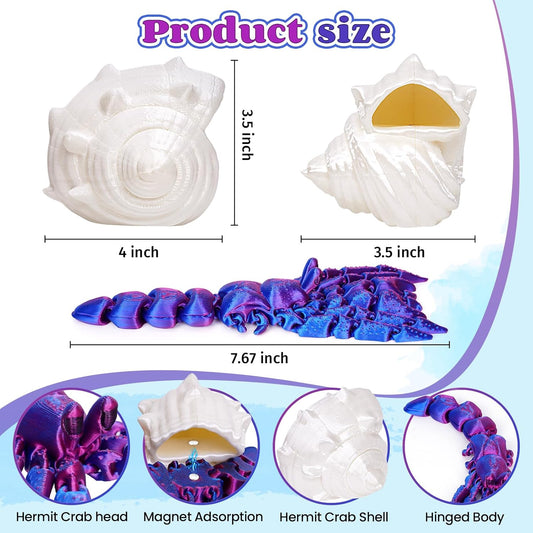 3D Printed Hermit Crab Fidget,3D Printed Dynamic Animals Toy,Full Articulated Flexible Crystal Hermit Crab Fidget Fidget Toys,Adults Fidget Toys for Autism ADHD,Home Office Decor (Blue purple)