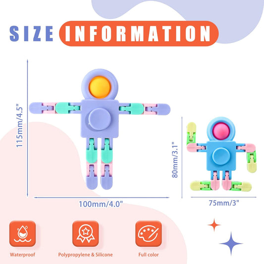 Hanaive 24 Pcs Robot Fidget Spinners Transformable Fingertip Gyro Chain Toy Fidget Sensory Toys Deformable DIY Stress Relief Fidget Toy Adults Pinata Goodie Bag Birthday School Gift