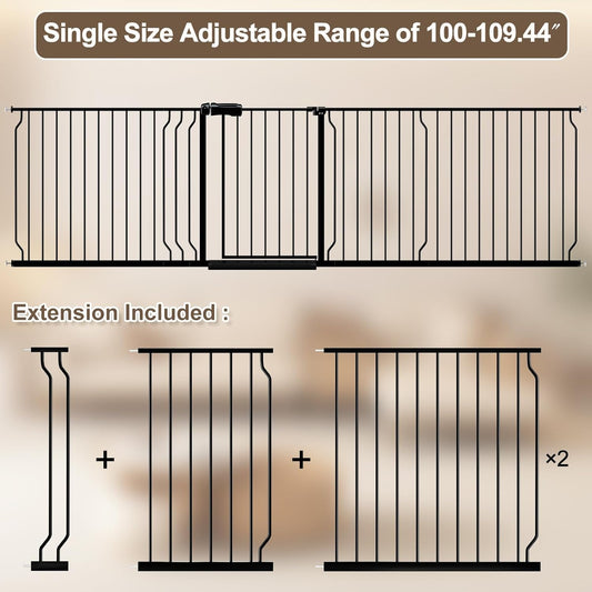 WAOWAO Baby Gate 100-109.42" Extra Wide Pressure Mounted Walk Through Swing Auto Close Safety Black Metal Toddler Kids Child Dog Pet Puppy for Stairs,Doorways,Kitchen