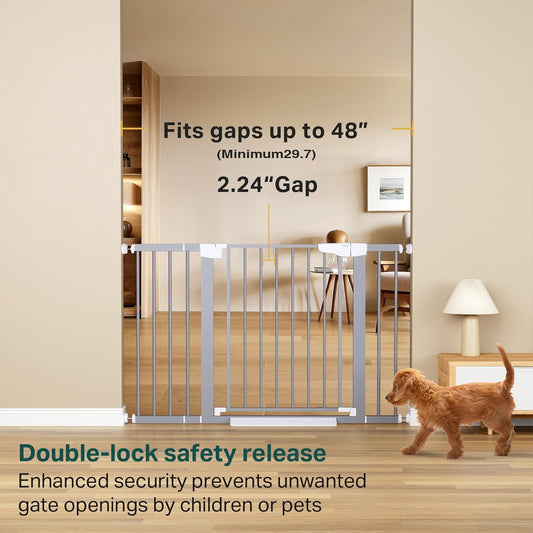 Cumbor 29.7"-51.5" Extra Wide Baby Gate for Stairs, Mom's Choice Awards Winner-Dog Gates for Doorways, Pressure Mounted Walk Through Pet Gate Indoor, Safety Auto-Close Child Gate for Kids, Gray