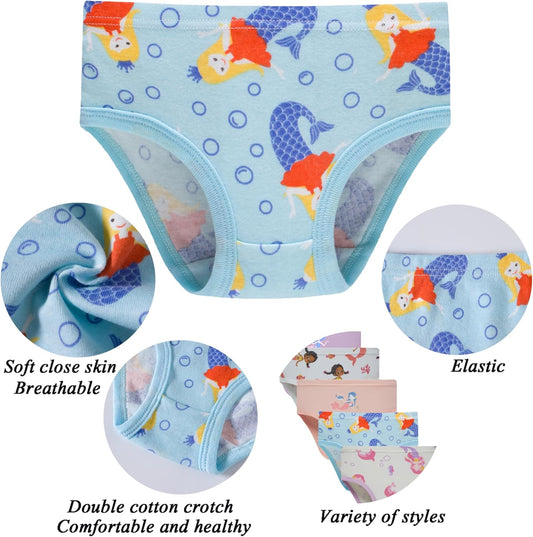 Girls' Underwear,Soft Cotton Tagless Panties for Toddlers' & Little Kids Comfort,Breathable Briefs,8-Pack