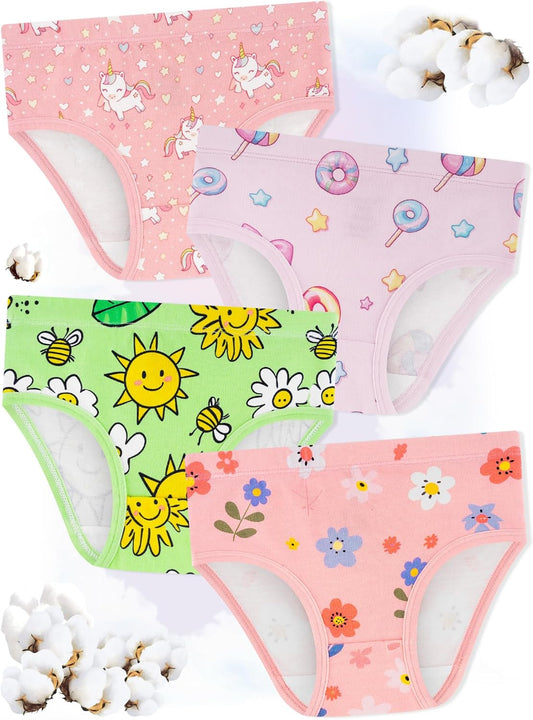 Girls' Underwear,Soft Cotton Tagless Panties for Toddlers' & Little Kids Comfort,Breathable Briefs,8-Pack