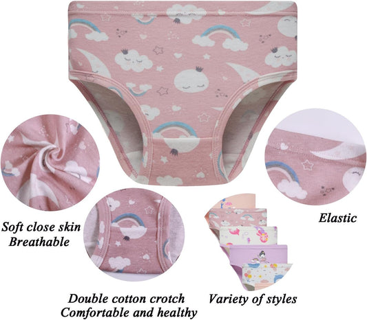 Girls' Underwear,Soft Cotton Tagless Panties for Toddlers' & Little Kids Comfort,Breathable Briefs,8-Pack