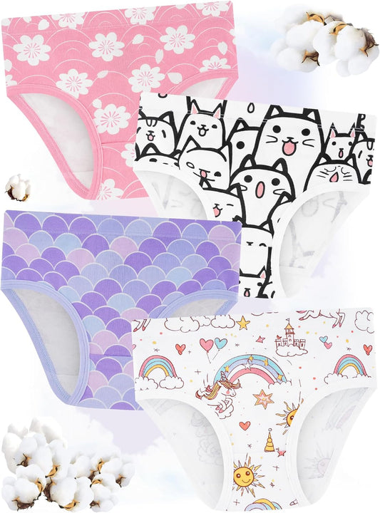 Girls' Underwear,Soft Cotton Tagless Panties for Toddlers' & Little Kids Comfort,Breathable Briefs,8-Pack