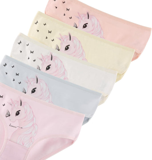Donella Girls' Soft Cotton Underwear - Kids Bikini Brief Panties for Girls and Toddlers 5-Pack, Age: 2-15