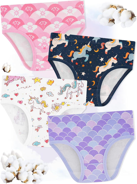 Haloumoning Girls Underwear Soft Cotton Underwear Toddler Girls Briefs Kids Comfy Panties,4-pack