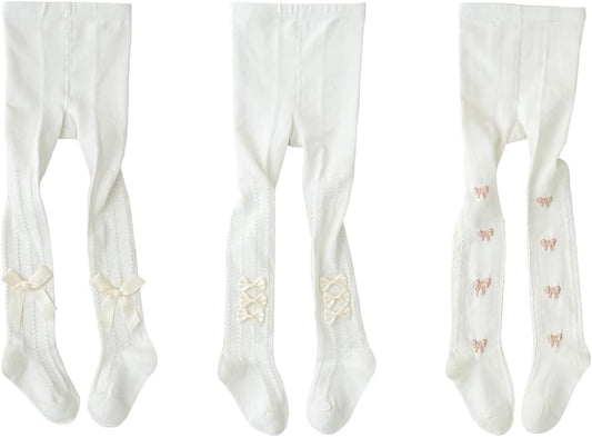 CHUNG Baby Girls Cotton Tights Thin Hollowed Summer with Bowknot Mesh Lace Fashion Toddler Footed Legging Pantyhose