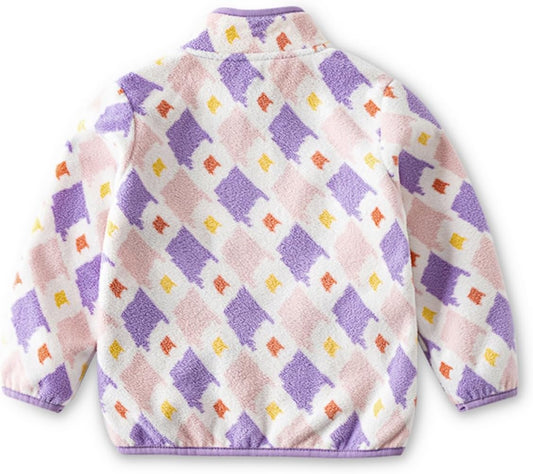 Kids Printed Polar Fleece Jacket Toddler Baby Boys Girls Autumn Winter Warm Sherpa Lining Outerwear Soft Lightweight