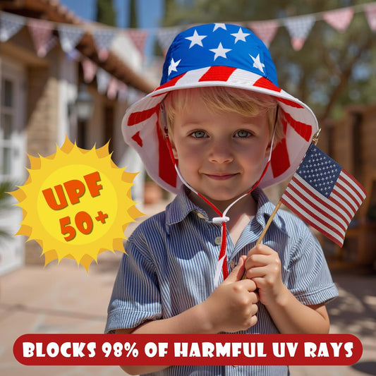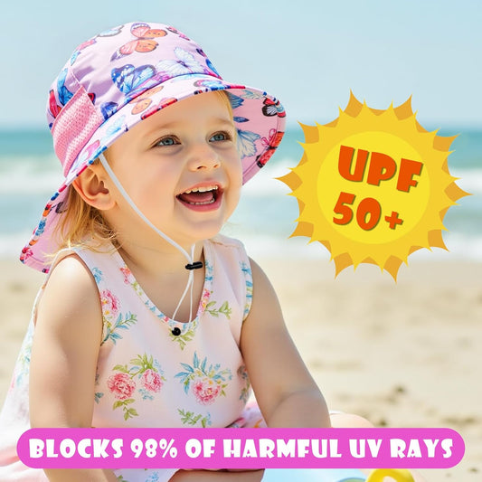 Toddler Baby Sun Hat Kids Summer UPF 50+ for Boys Girls Adjustable Beach Hats with Bucket Wide Brim Age 1-7 Years
