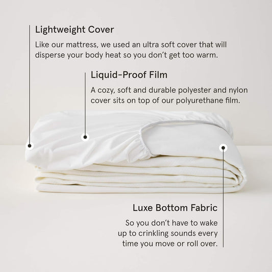 Tuft & Needle Full Mattress Protector - Waterproof, Liquid-Proof, Sleeps Quiet, Fitted Sheet Style, Soft and Comfortable, White