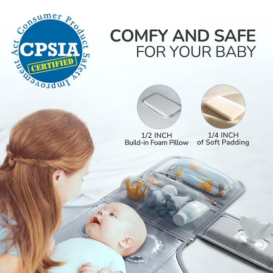 Baby Changing Pad by Lil Fox. Portable Changing Pad for Baby Diaper Bag or Changing Table Pad. One-Hand Diaper Change Pad. Baby Shower Gifts, Newborn Baby Essentials, Unisex Baby Stuff
