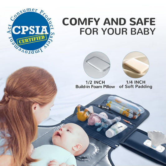 Portable Diaper Changing Pad for Baby, Detachable Travel Changing Pad with Baby Wipes Pocket, Gifts for Baby Shower, Newborn Girls and Boys (Navy)