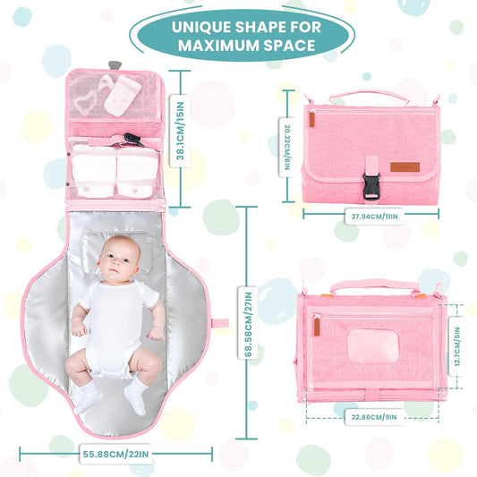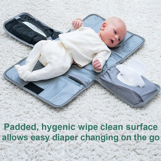 Portable Changing Pad - Waterproof Travel Baby Diaper Changing Pad, Mat Foldable, Wipes Pocket, Gifts