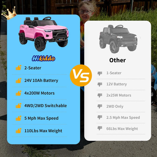 2 Seater Ride on Toy Car for Kids, 24V 4x4 Ride-on Truck Kids Electric Car w/Remote Control, 4x200W Motors - Hot Pink