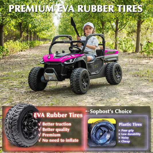 sopbost 24V Ride On Car with Remote Control 10Ah Battery Powered Ride On Toy for Big Kids to Drive 2 Seater UTV with Large Dump Bed, 4x75W Motors, Hot Pink & Black
