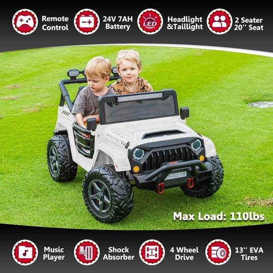 24V 9Ah Ride on Toy for Big Kids, 4WD 2 Seater Ride on Car Truck with Remote Control, 4x200W Motor - White