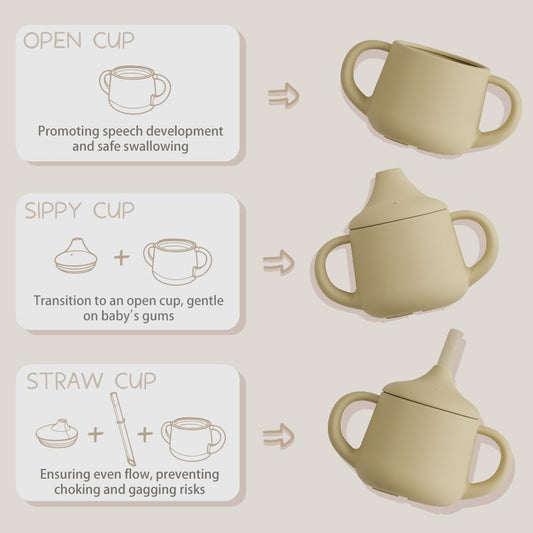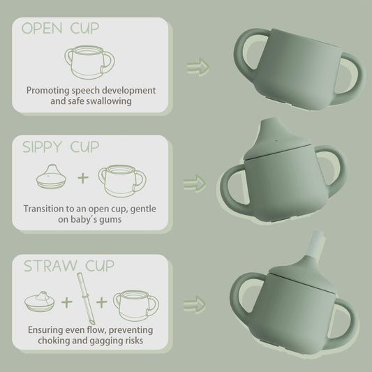 Moonkie Silicone Baby Sippy Cups | 3 Stages Training Cup Straw Cup for Infants Toddlers and Kid | 4 oz 1Pack