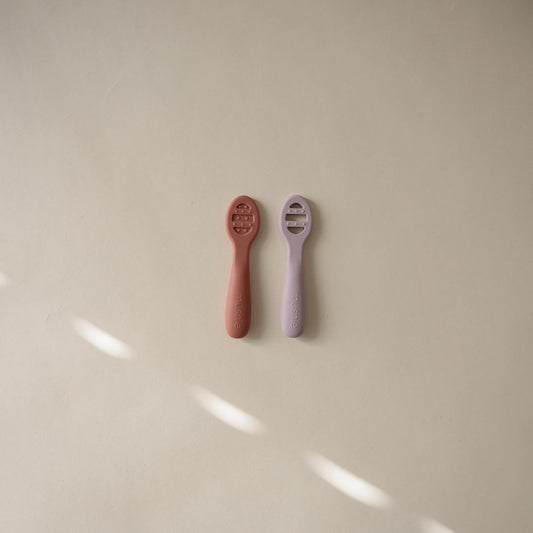 mushie Silicone First Feeding Baby Spoons | 2 Pack (Rose/Soft Lilac)