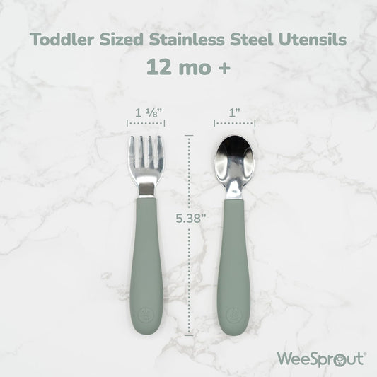 WeeSprout Toddler Utensils, 3 Forks & 3 Spoons, 18/8 Stainless Steel & Food Grade Silicone, Thick Easy-Grip Handles, Perfect Length For New Self Feeders, Gentle On Gums & Teeth, Dishwasher Safe