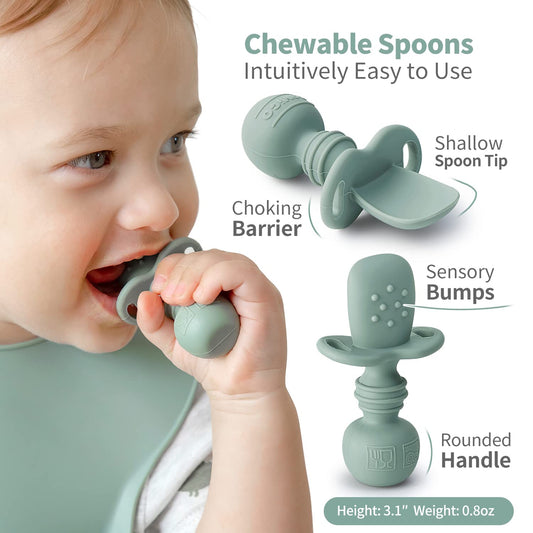 WeeSprout Toddler Utensils, 3 Forks & 3 Spoons, 18/8 Stainless Steel & Food Grade Silicone, Thick Easy-Grip Handles, Perfect Length For New Self Feeders, Gentle On Gums & Teeth, Dishwasher Safe