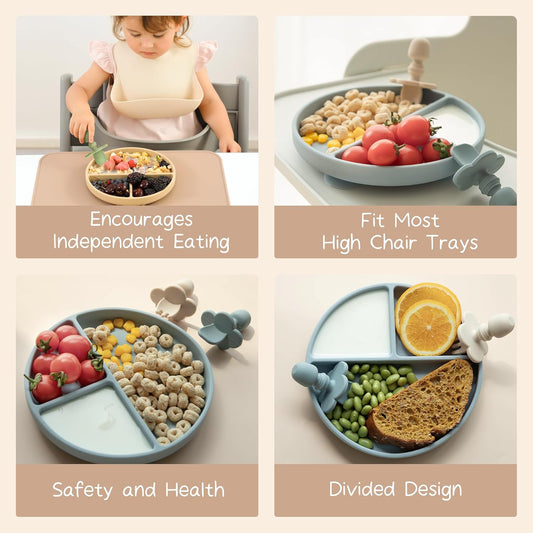 Olababy 100% Silicone Suction Plate | Toddler Plates With Suction | Divided Plates For Kids | Self Feeding Baby Essentials | Food Grade Silicone | Baby Registry Must Haves | Microwave Dinner Plates