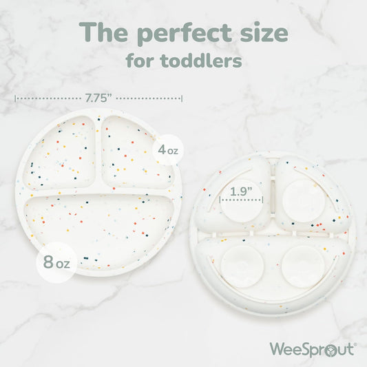 WeeSprout Suction Plates for Babies & Toddlers - 100% Silicone, Dinnerware Stays Put, Divided Design for Picky Eaters, Microwave & Dishwasher Friendly, 3 Pack