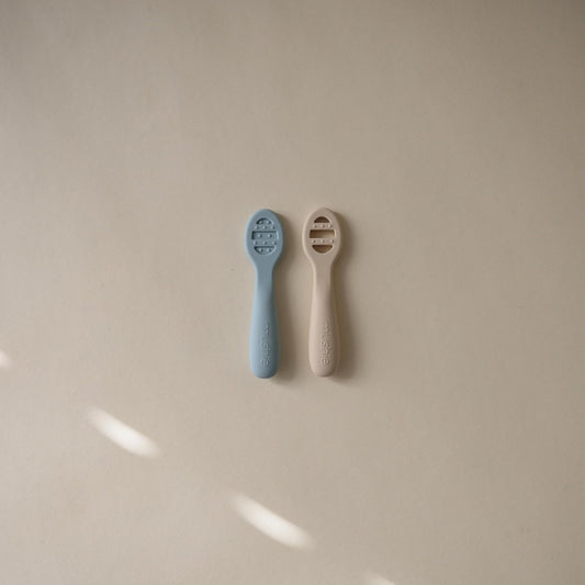 mushie Silicone Toddler Starter Spoons | 2 Pack (Tradewinds/Shifting Sand)