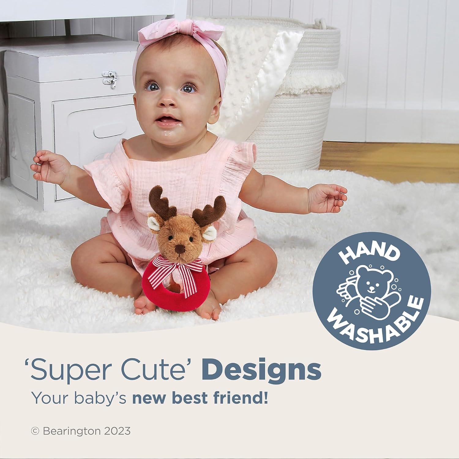 Bearington Baby Lil’ Reindeer Christmas, 5.5 Inch Christmas Reindeer Plush Stuffed Animal, Soft Baby Rattles and Plush Rings