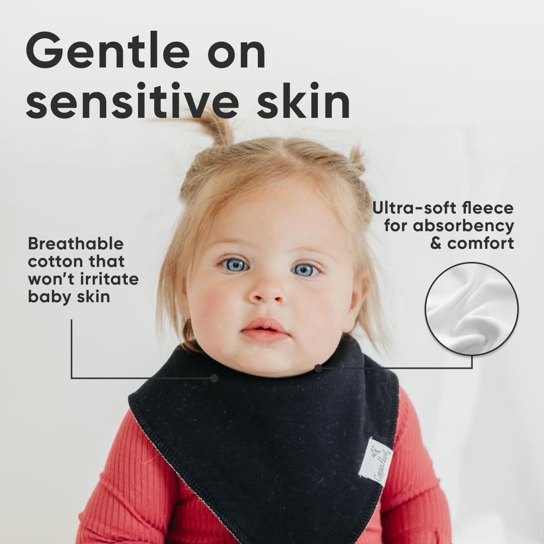 - MAXIMUM ABSORPTION: Fronted by ultra-soft Organic Cotton and lined with water-resistant polyester fleece to provide an extra layer of absorbency. Each bib is crafted with dual-layer protection against heavy drooling or spit-up, keeping your baby dry and comfortable.