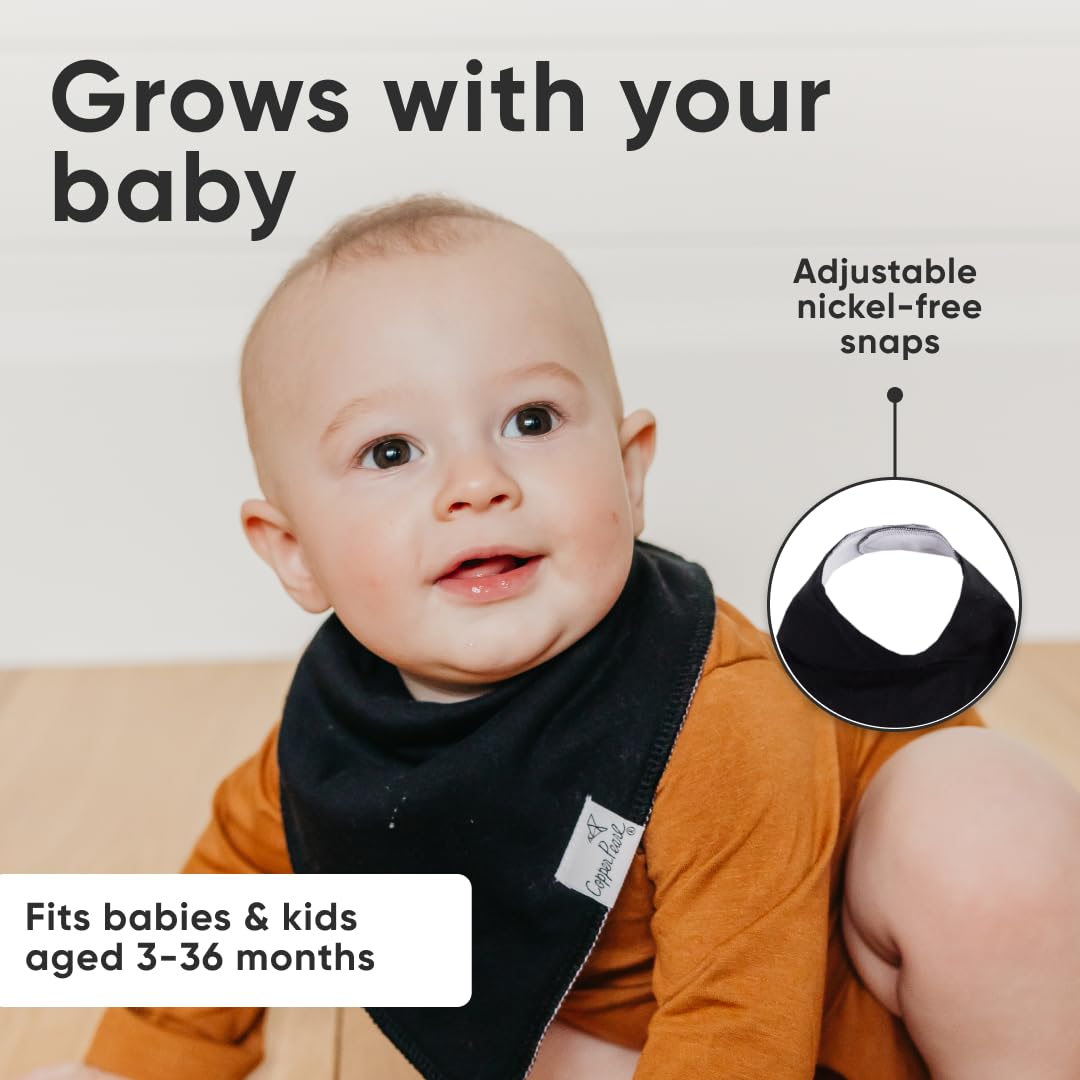 Copper Pearl 4 Pack Soft Cotton Baby Bibs for Drooling and Teething, Absorbent Drool Bibs for Baby Girl and Boy, Adjustable to Fit Newborns to Toddlers (Black Basics)