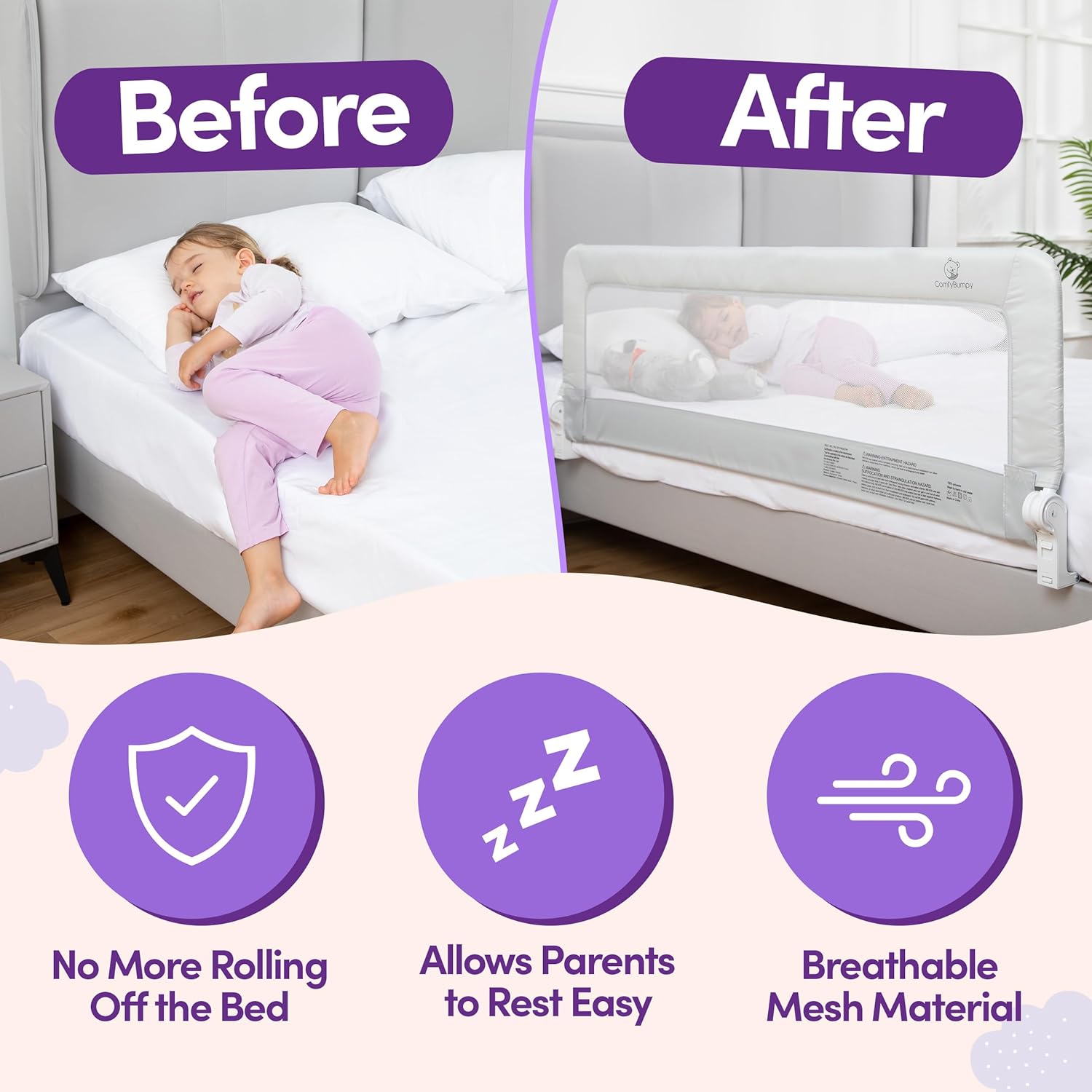 - NO MORE ROLLING OFF THE BED - ComfyBumpy bed rail for toddlers provides your child extra security without them feeling the bars under their mattress. Your toddler will sleep safely and comfortably all night long!