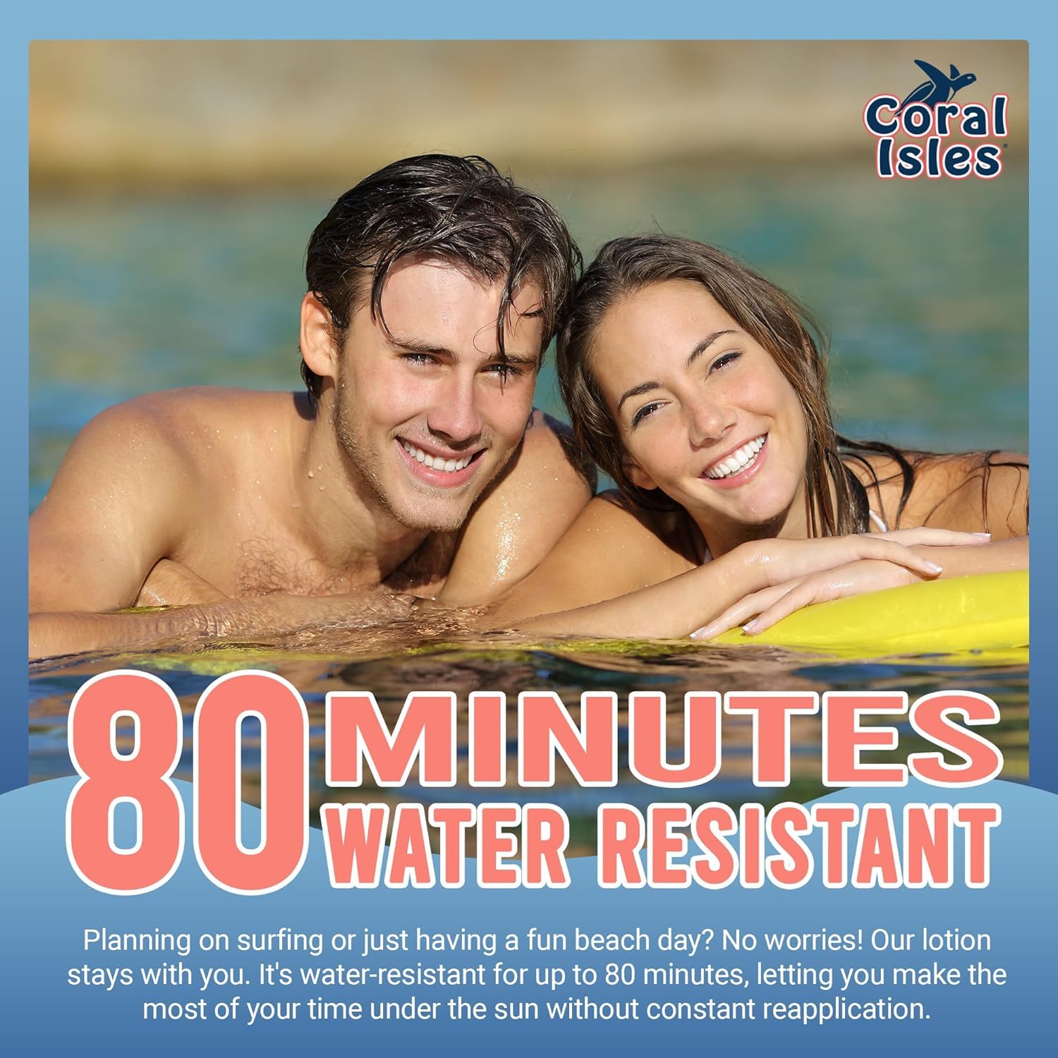 - LONG-LASTING AND WATER RESISTANT: Stay protected without constant reapplication. Our water-resistant formula lasts up to 80 minutes, allowing you to enjoy water activities without worries. Apply 15 minutes before sun exposure and reapply every 2 hours or after toweling off for maximum effectiveness.