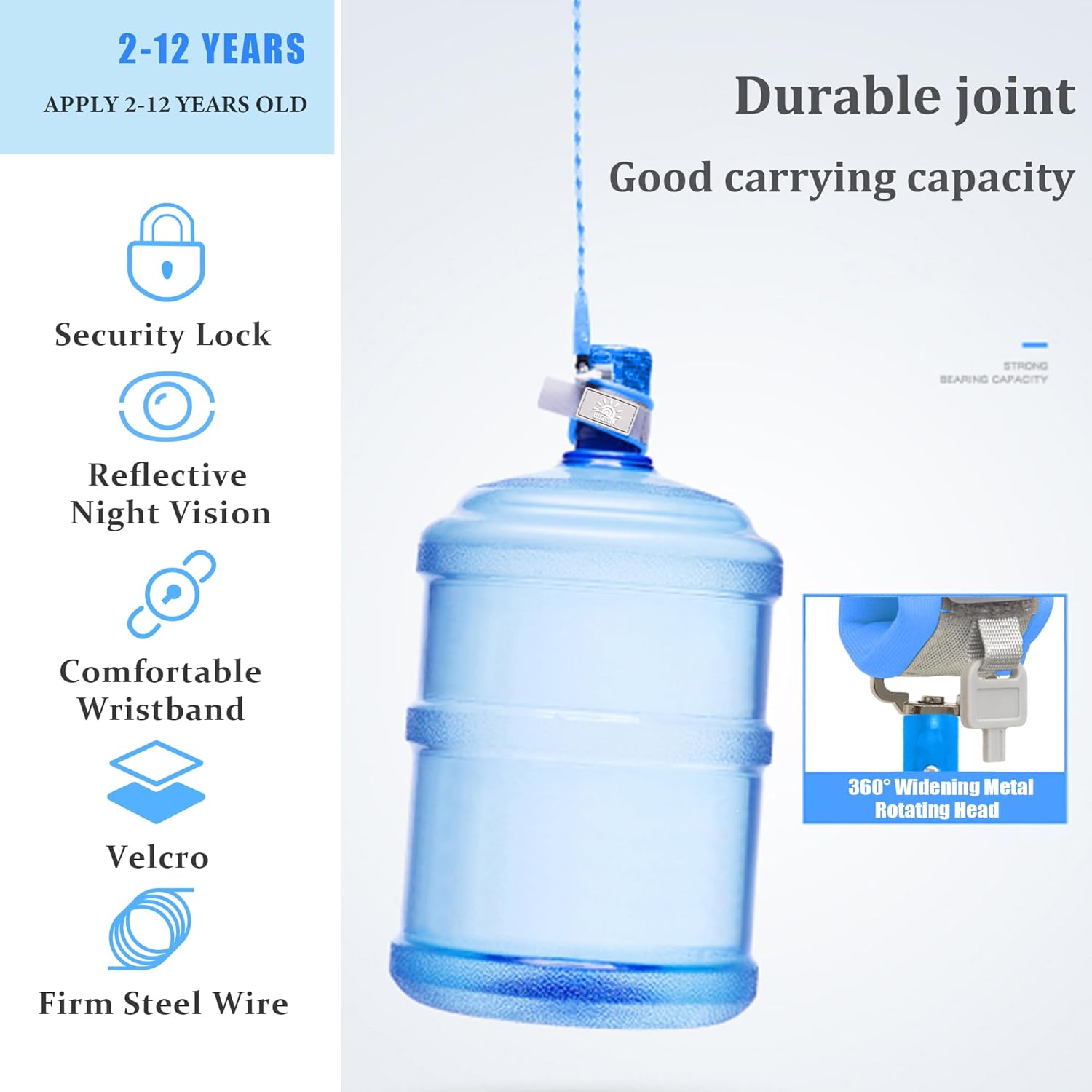 Anti-Lost Wrist Link, Blue Reflective Anti-Lost Wrist Chain with Child Lock 6.56 feet.