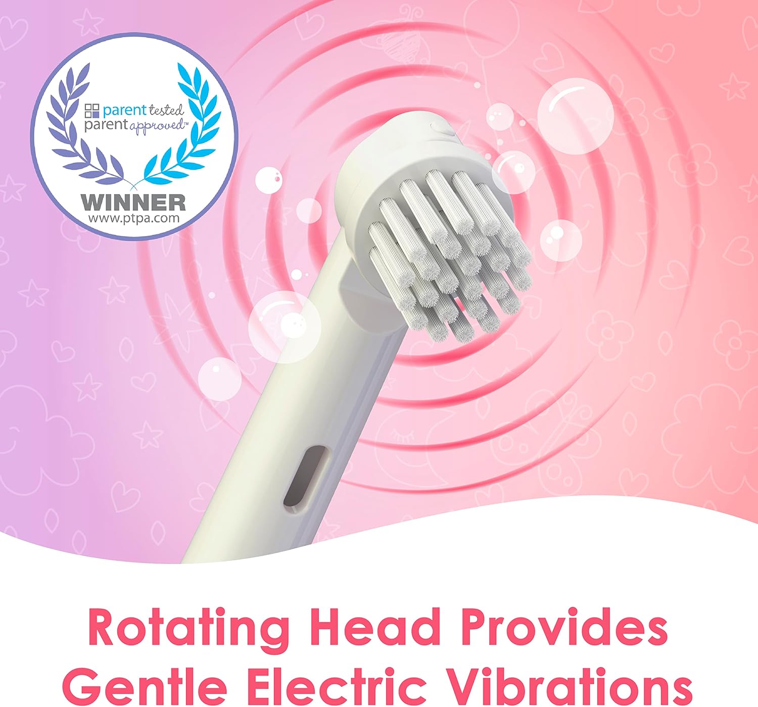 Brusheez Kids’ Electric Toothbrush Set - Safe & Effective for Ages 3+ - Parent Tested & Approved with Gentle Bristles, 2 Brush Heads, Rinse Cup, 2-Minute Timer, & Storage Base (Sparkle The Unicorn)