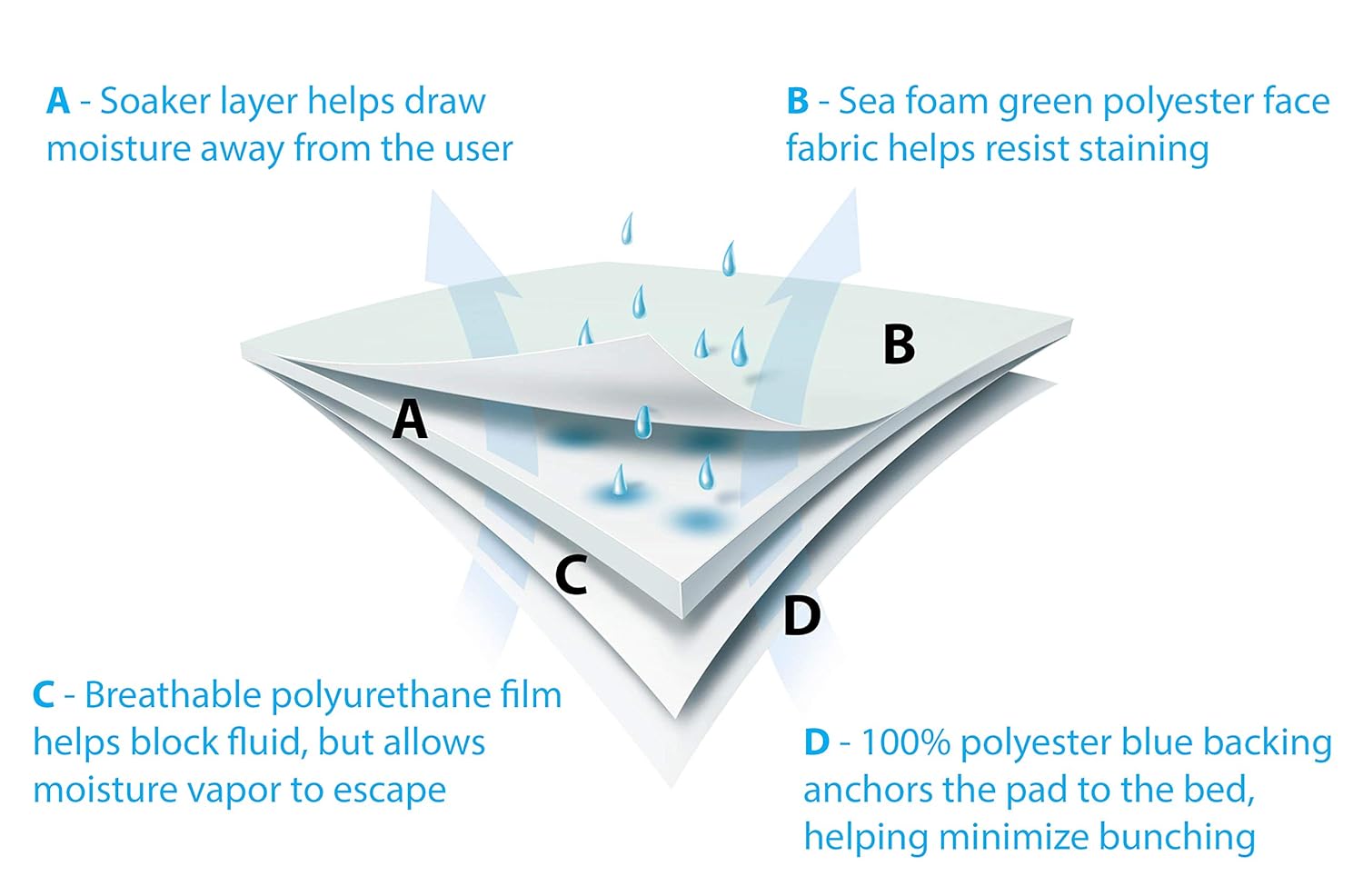 - Quick Dry Poly Laminated Underpads wicks fluid away and is dry to the touch in minutes