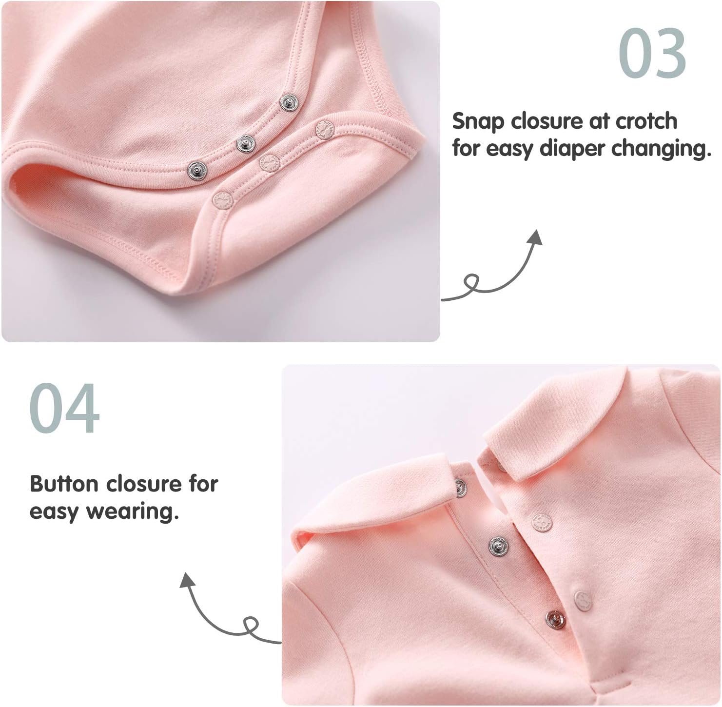 - Made in natural cotton fabric, features solid color, sweety peter-pan collar, long sleeve design , your baby girl will feel elegant in our baby bodysuit.