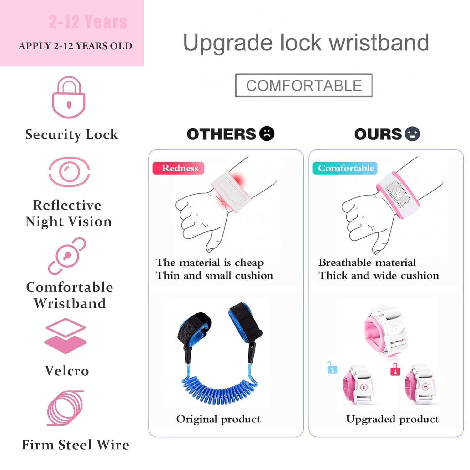Toddler Harness Walking Leash- Child Anti Lost Wrist Link - Child Safety Harness - Upgrade with Reflective(6.5ft) - for Boys and Girls,Not Easy to Open Without Key (Pink)