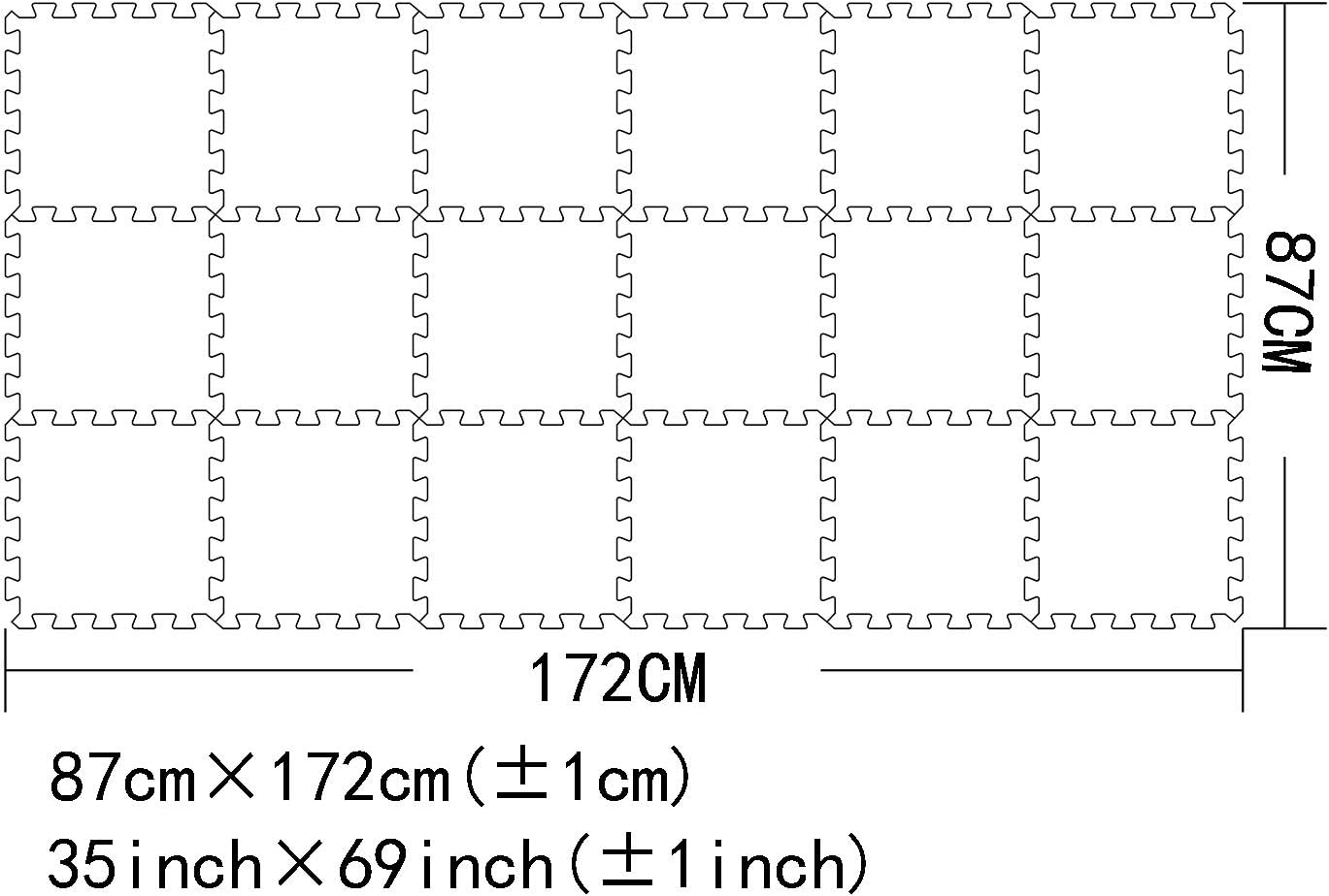 - ☺ Play Mat Size: the size of one piece:30 x 30 x 1CM (11.8 x 11.8 x 0.4 inches); 18 pieces mats cover area: 172cm x 87cm (±1CM) / 69" x 35"(±1inch)