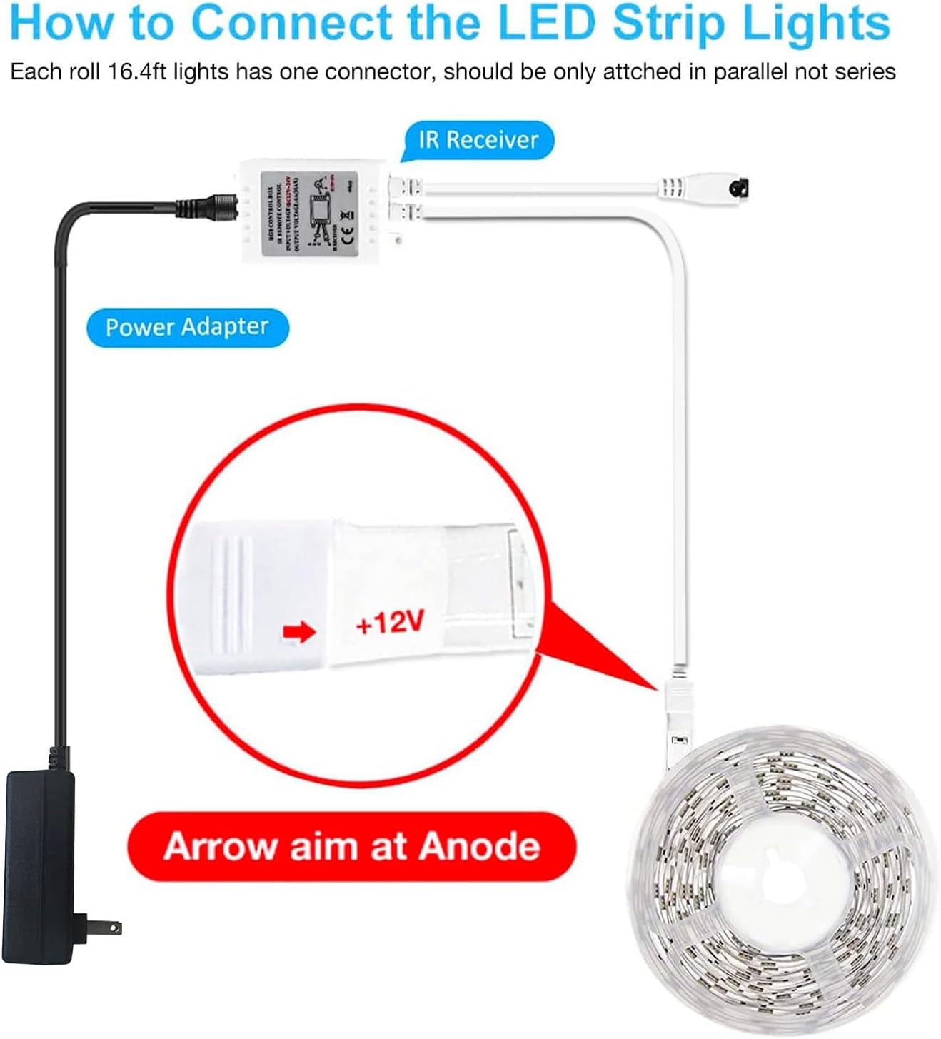 - Strong self adhesive: The led strip lights has strong self adhesive so they stick very well on tv, cars, cabinets and wall; Please test the led light strip before installation, the strip can be connected in parallel, not in series