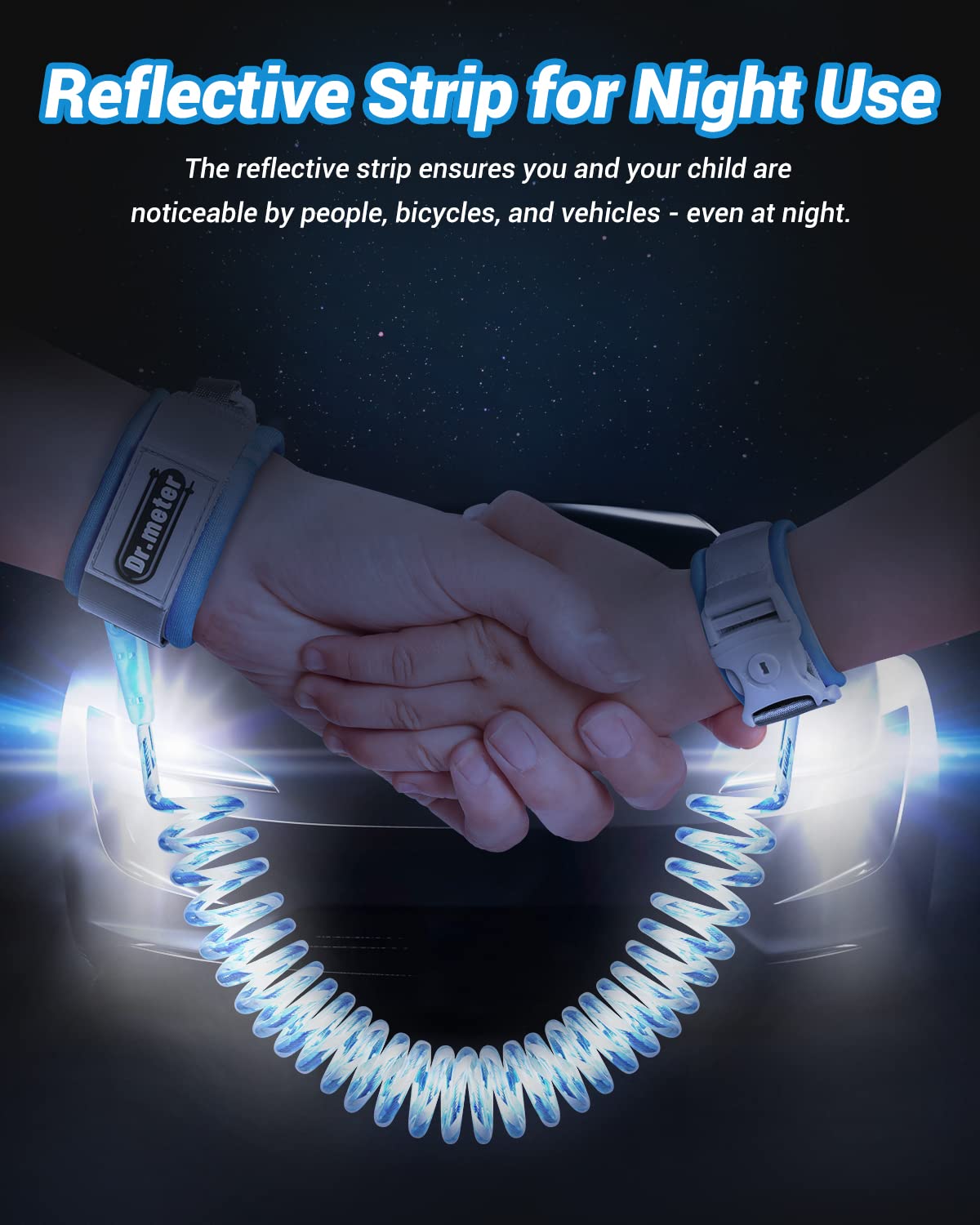 Dr.meter Kids Leash for Toddler, Reflective Anti Lost Wrist Link with Key & Lock, 8.2ft Safety Wristband Child Walking Harness for Supermarket Mall Airport Amusement Park Zoo Travel, Blue