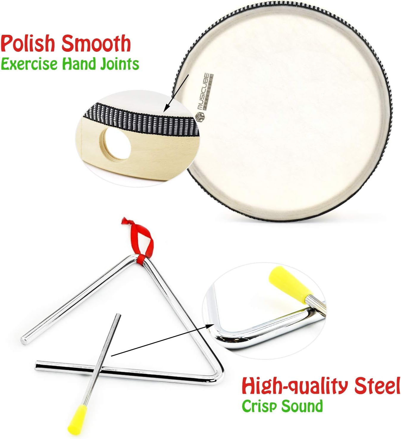 MUSICUBE 7 Pcs Musical Instrument Toys Set for Kids Wooden Percussion Instrument with Hand Drum, Maracas, Triangles, Hand Bell Educational Instrument for Toddler Birthday Gift for Boys Girls Aged 3+