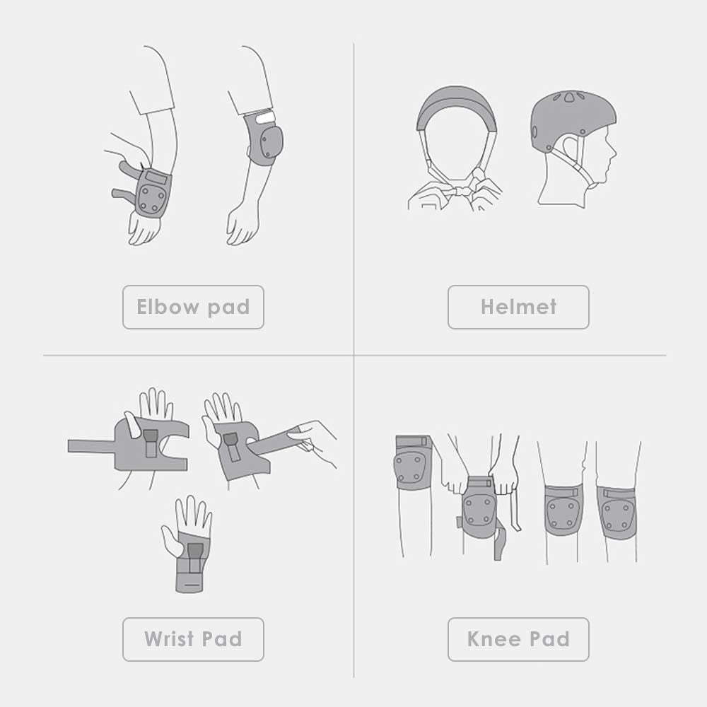 - 7 PIECES PROTECTIVE GEAR SET: The Package comes with 1*Helmet, 2*Knee Pads, 2*Elbow Pads and 2*Wrist Guards . They are all wrapped with mesh pocked and packed in an outer gift box.