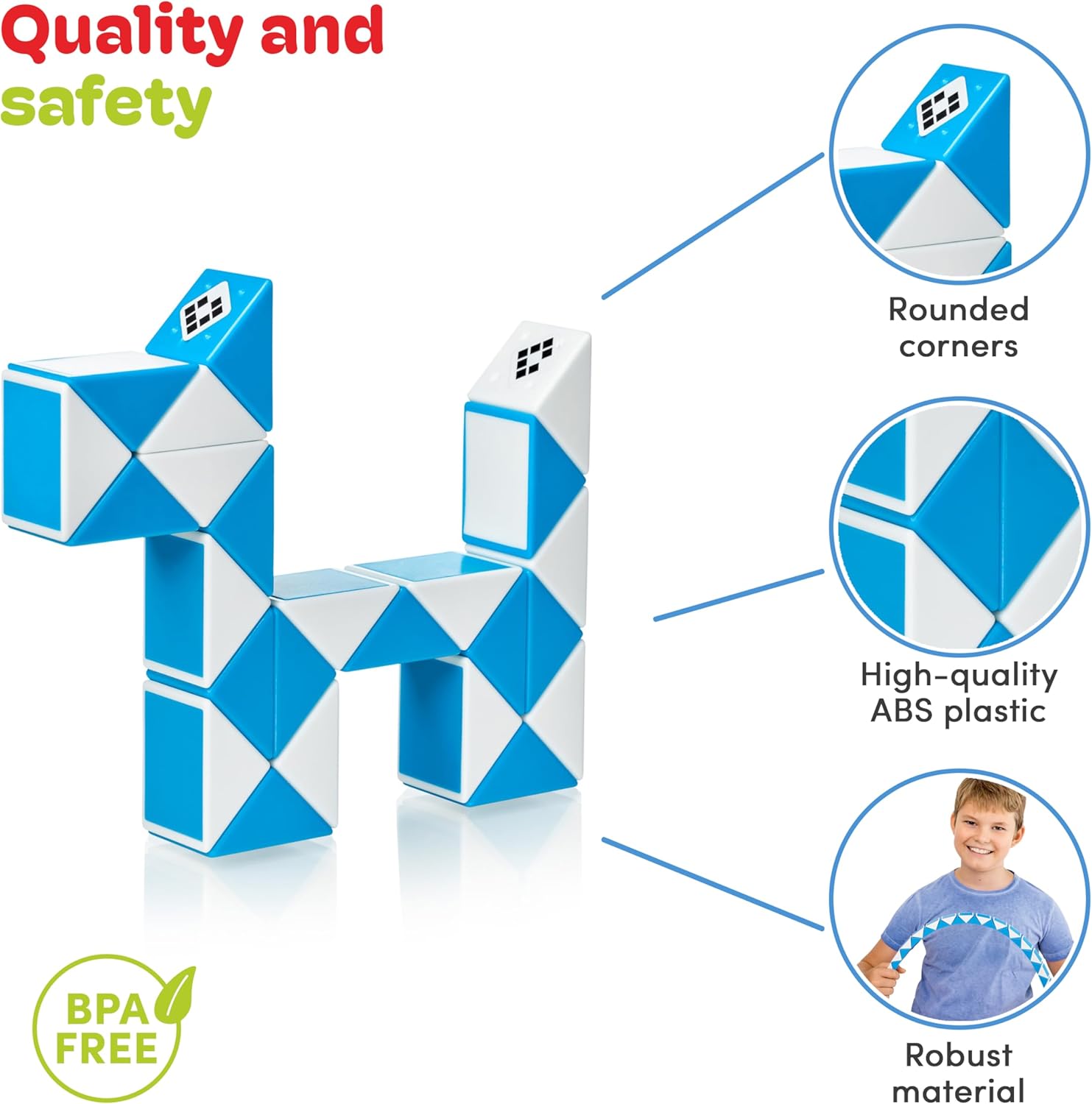 CUBIDI® Magic Snake Cube | Fidget Snake Toy for Kids | Travel Toys for Kids Ages 4-8 | Great Gift for Boys and Girls Birthday, Christmas, Stocking Stuffers - 24 Blocks | 0.9 inch x 0.7 inch | Blue