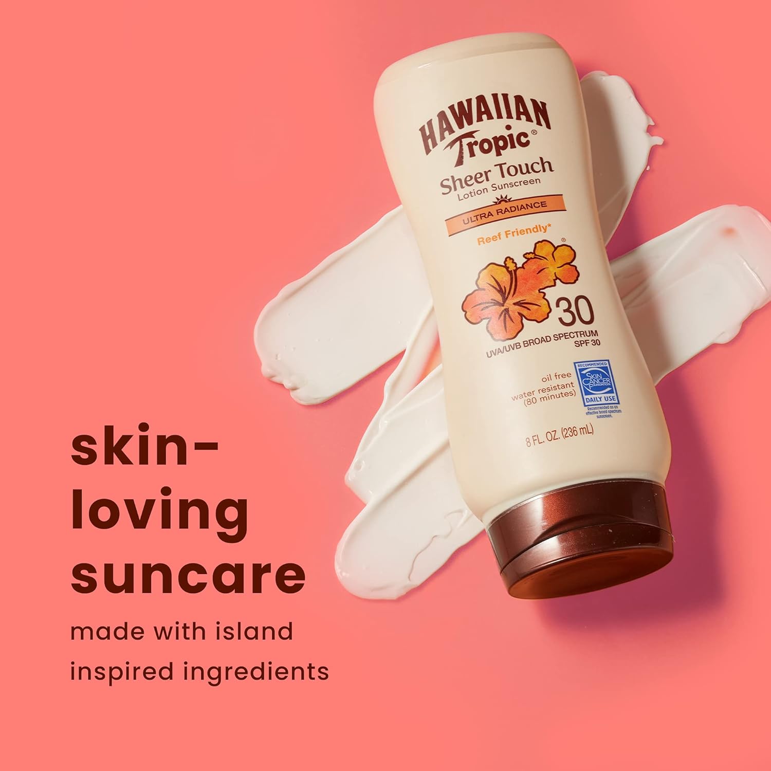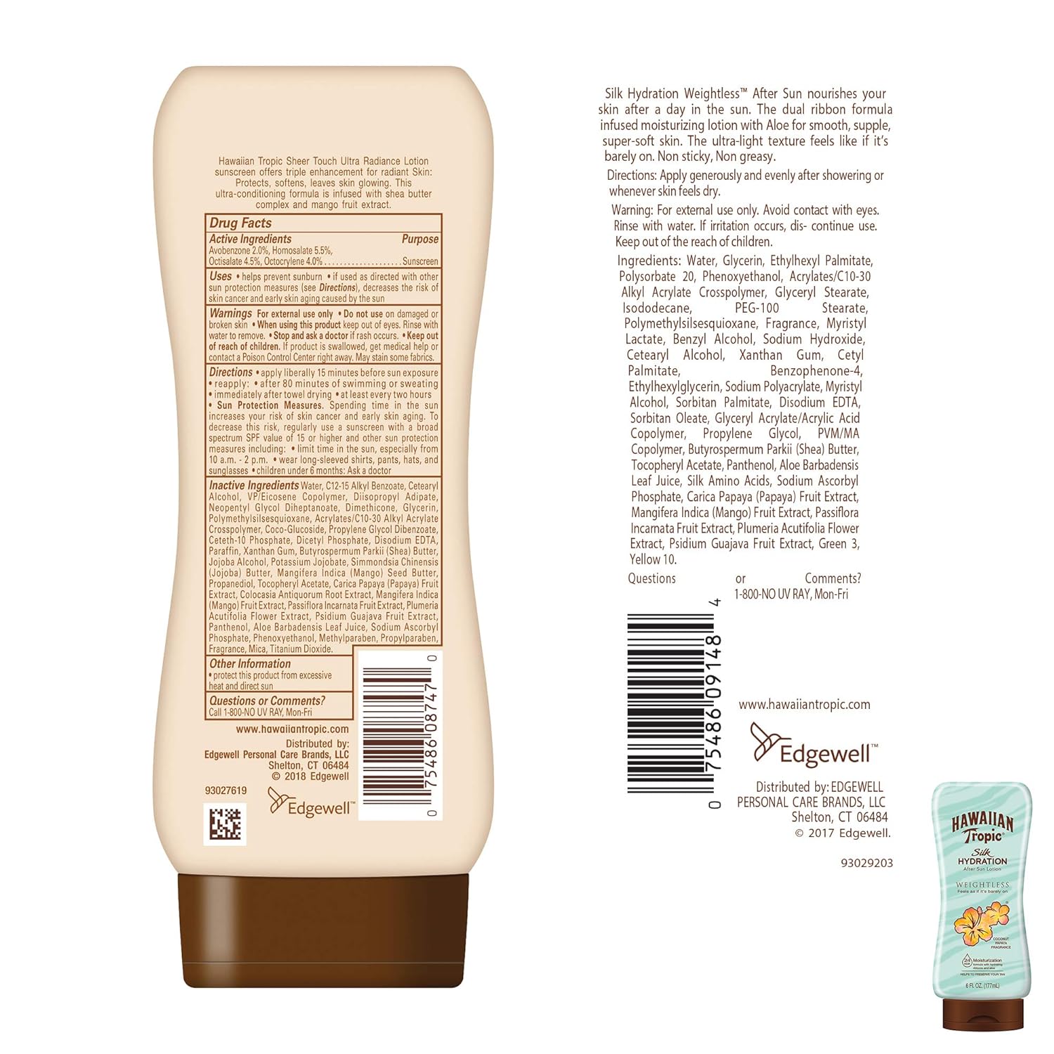 Hawaiian Tropic SPF 30 Broad Spectrum Sunscreen and After Sun Pack with 8oz Sheer Touch Moisturizing Sunscreen Lotion and 6oz Silk Hydration Weightless After Sun Lotion