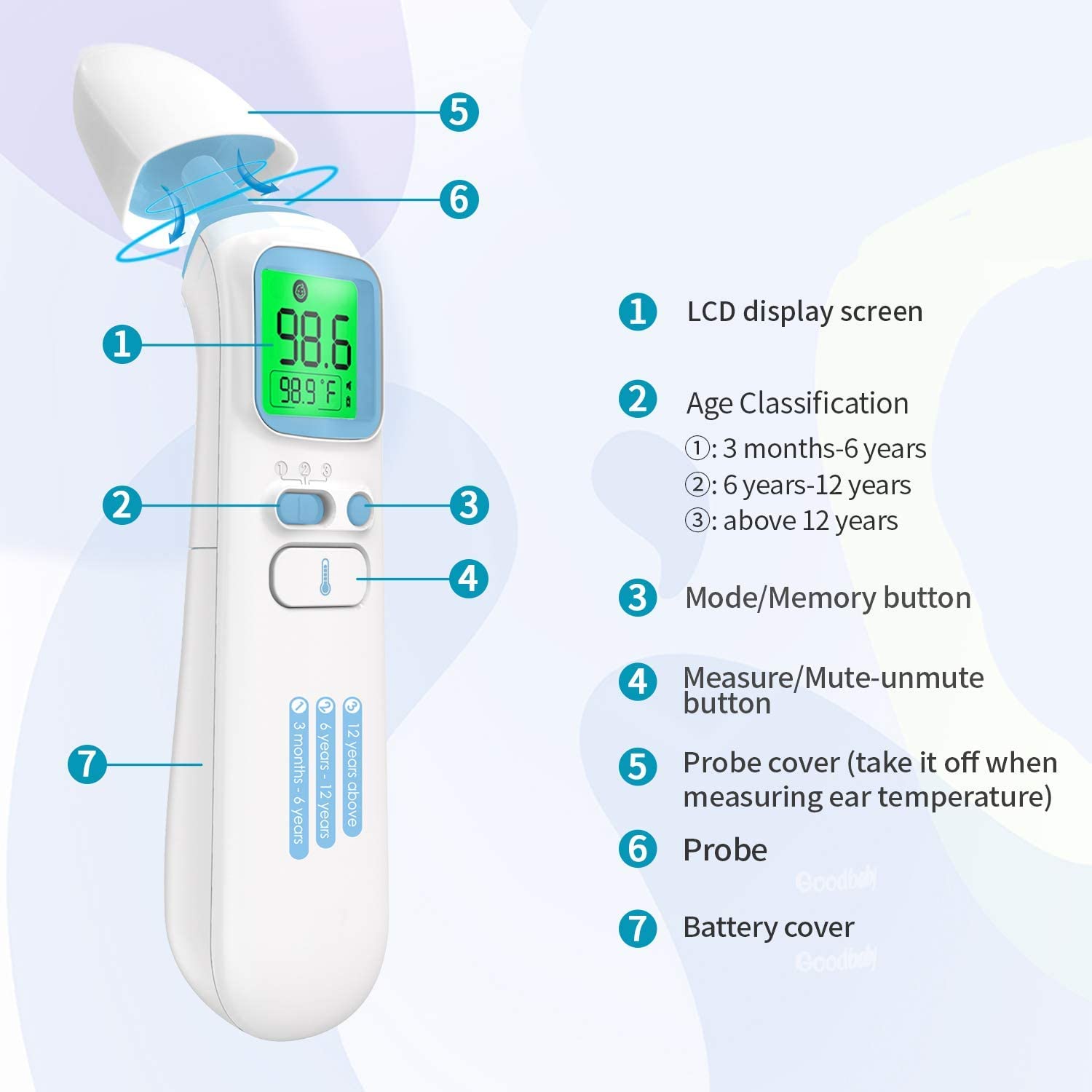 GoodBaby Touchless Thermometer for Adults,Forehead and Ear LCD Display Thermometer for Fever,Infrared Magnetic Thermometer for Baby Kids Surface and Room