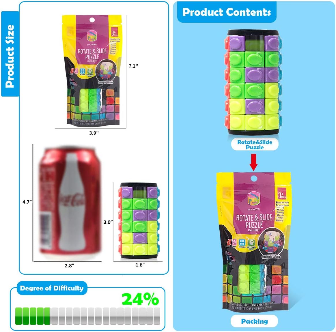 - 【Non-toxic,high-quality,safety】Nothing compares to the quality,color and unique design of the R.Y.TOYS cylinder puzzle gifts-All products have a variety of international toy quality and safety certifications