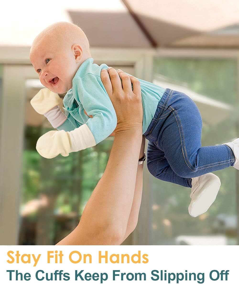 - 【Size】: Our Newborn mittens are on the larger size to fit your growing baby. The old fashion mittens usually don't stay on and only fit for a few weeks. Baby newborn mittens will stay on longer and are big enough for a growing newborn. It's often difficult to find no scratch mittens for babies that are larger than a newborn. This can be frustrating for parents that have babies who have eczema or who tend to scratch their faces.